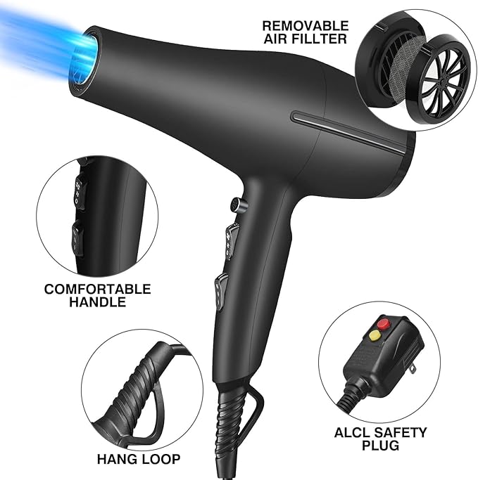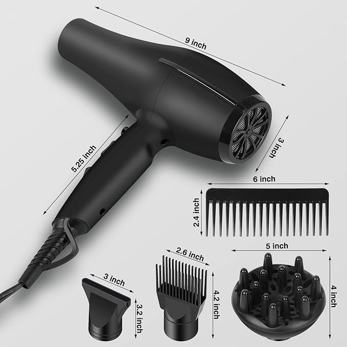 Achieve salon-quality results at home with this 2000W Hair Dryer, powered by a high-performance AC motor for fast, efficient drying. Whether you want smooth strands or defined curls, the included diffuser attachment helps you style with precision.